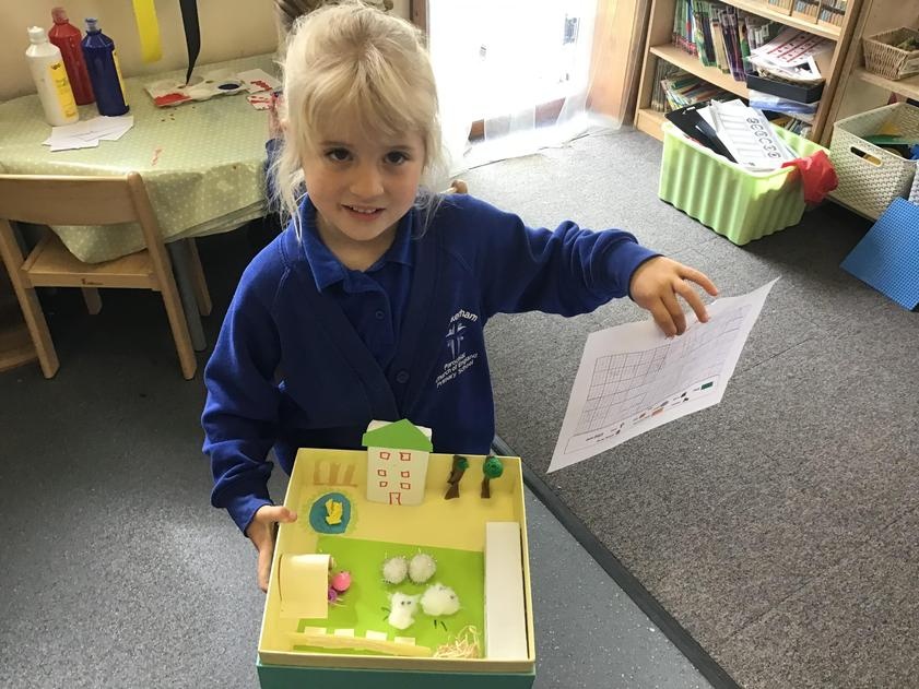 We are learning about farms and then contrasting the farm with other habitats. The children have designed and then built their own farms using their knowledge of what we would find on the farm. We learnt about animals that live on the farm and the products that we get from them. The children loved welcoming our class cow Nora and having a go at milking. Our outside area became a farm shop where the children enjoyed selling fruit and vegetables and designing their own tea party recipes. We are learning about lifecycles and have our own caterpillars to look after and observe. We are finding out about machines on the farm and how these and farm jobs have changed over time.